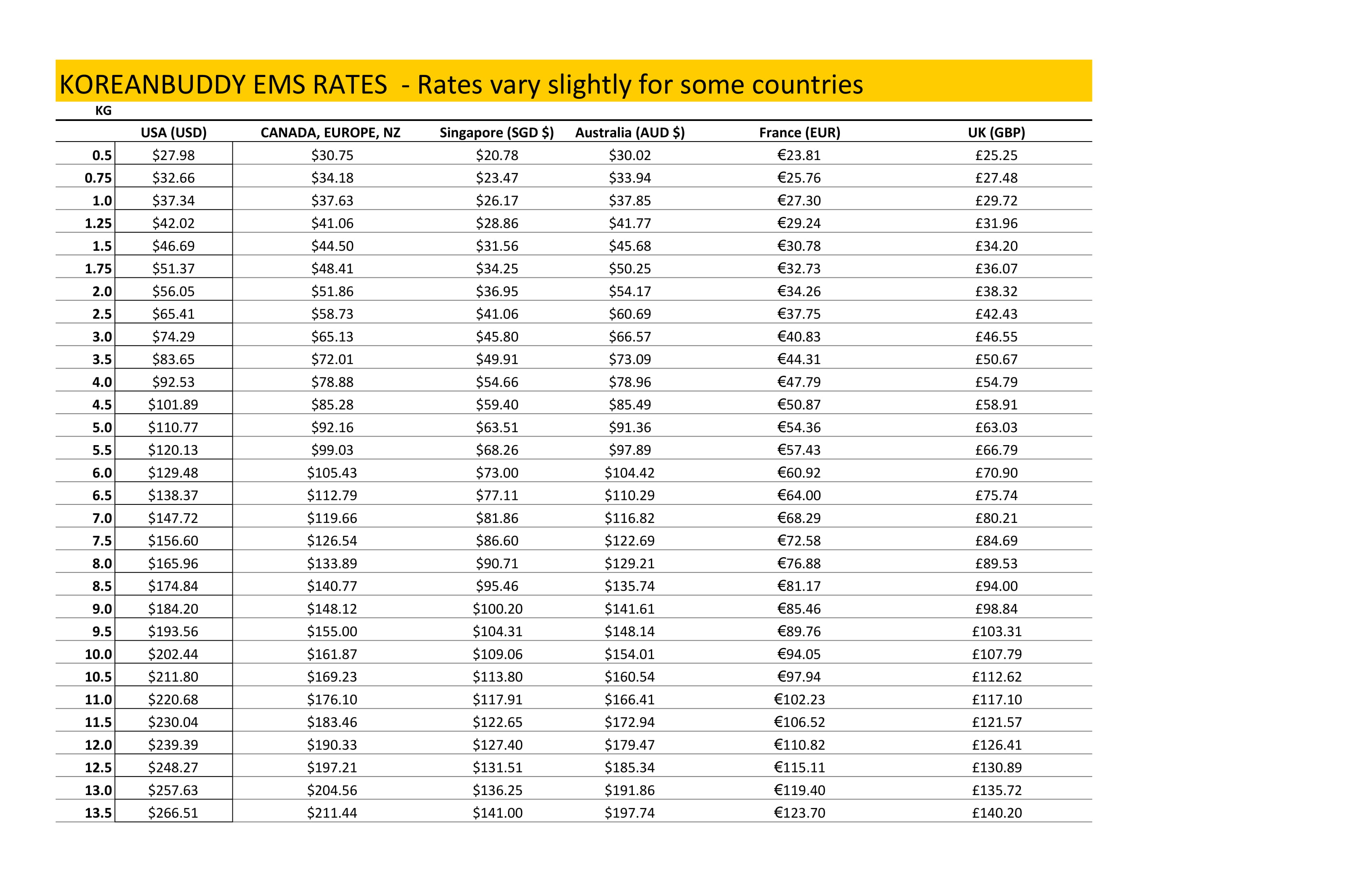 Rates may be slightly different. Link to the EMS shipping calculator *Choose ‘others’ not documents